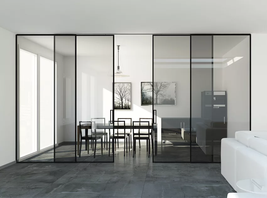 Перегородки могут быть как со скрытым профилем — для чистого, минималистичного вида, так и с открытой рамой, если хочется сделать акцент и подчеркнуть стиль интерьера, особенно в лофт или хай-тек пространстве.